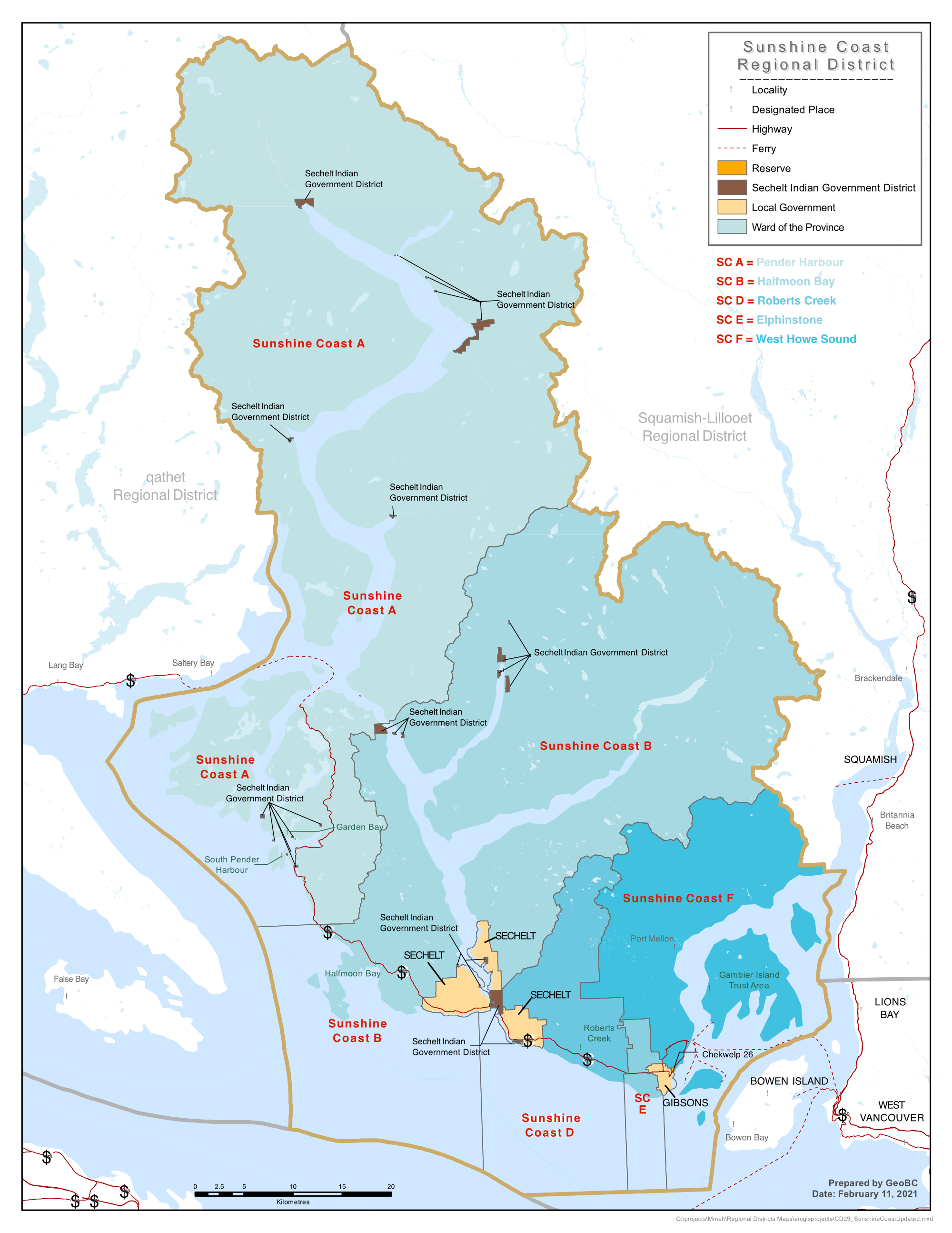 What was then known as the Sechelt Indian Government District would always remain outside of any other amalgamated areas, so they will not be considered a part of any restructuring conversation here.